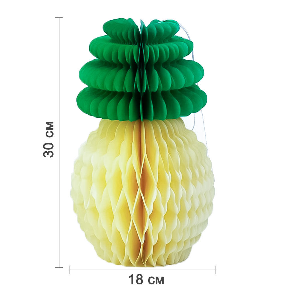 Бумажное украшение "Ананас"  30х18 см — сочный и праздничный элемент для оформления стола, фотозон, витрин и интерьера. Поставляется в сложенном виде, легко раскрывается в пышную объёмную форму.