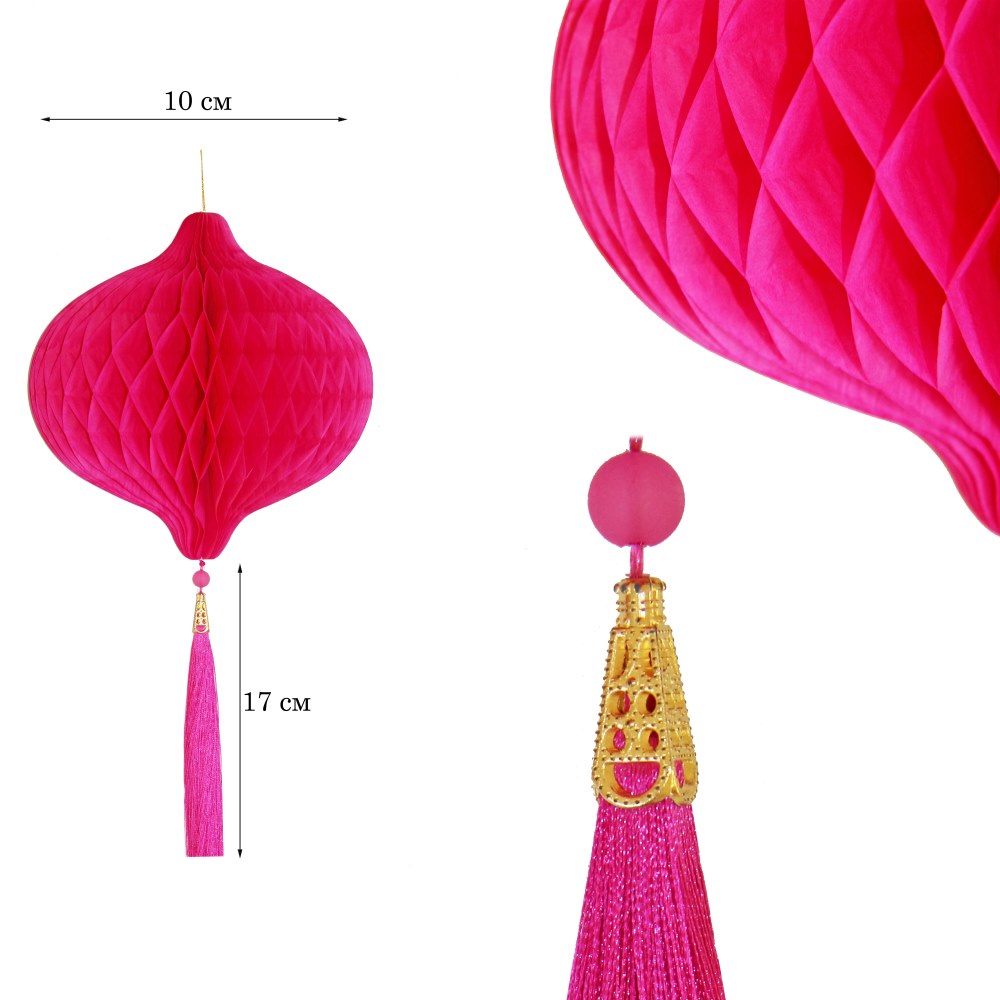Бумажное украшение Шар-соты с кисточкой, малиновый - 1шт.