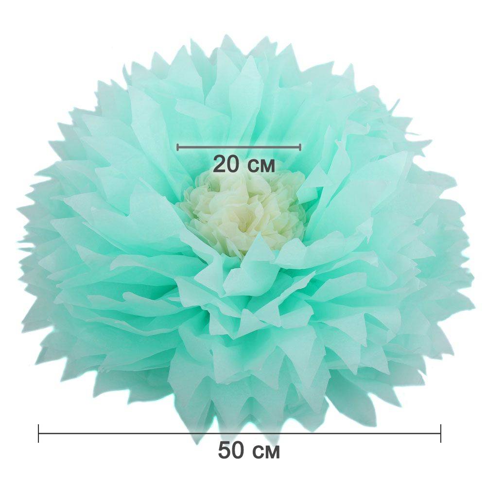 Бумажный цветок 50 см мятный+айвори