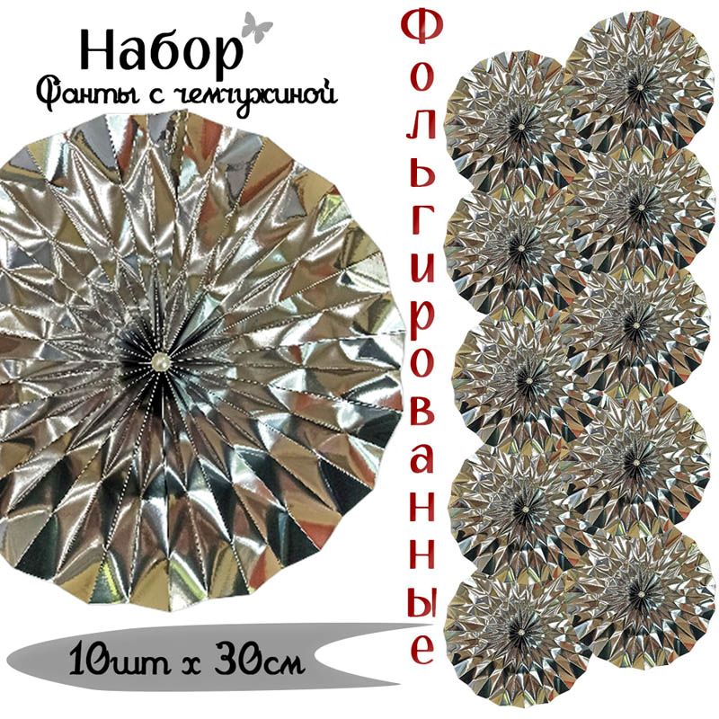 Фанты фольгированные с жемчужиной НАБОР 10шт х 30см, серебро