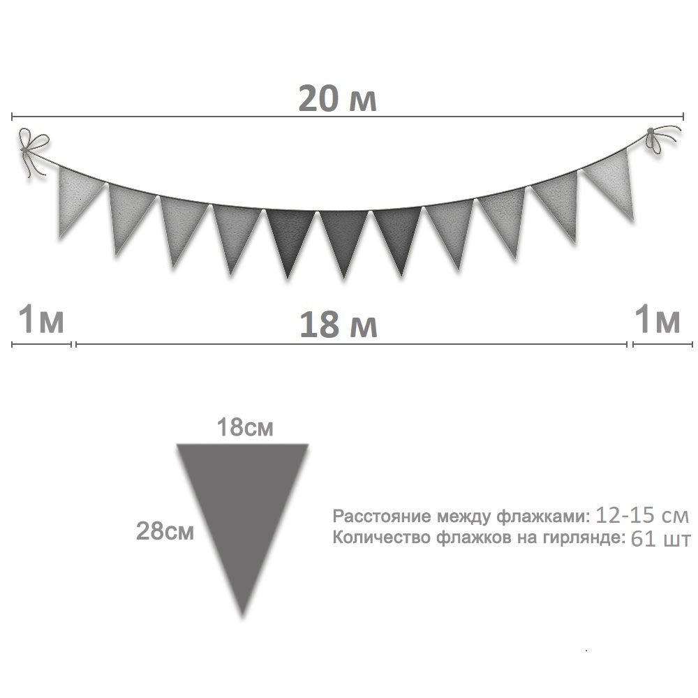 Гирлянда флажковая уличная 18 м, шаг 15 см, Триколор