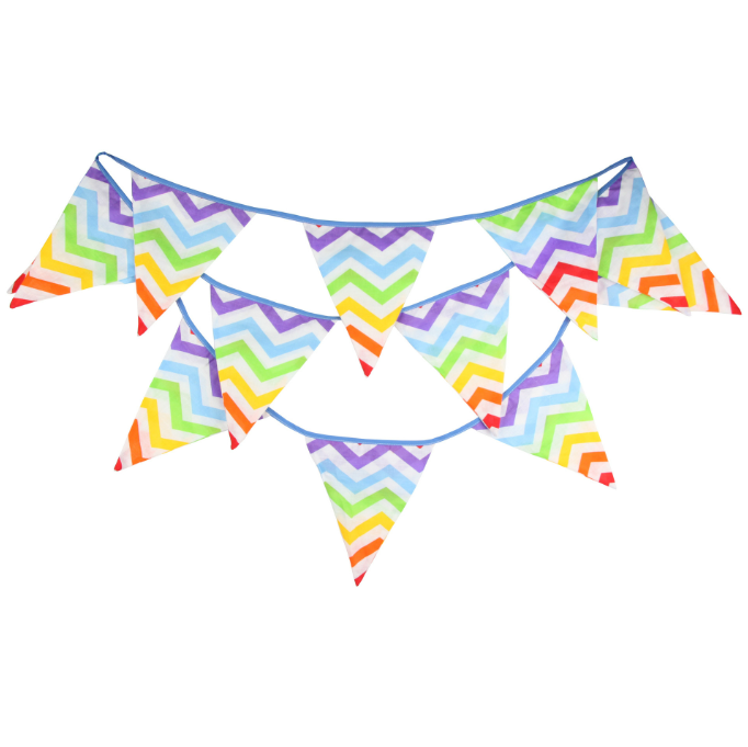 Гирлянда состоит из 12 флажков. Расстояние между флажками - 6 см, общая длина составляет 4 м.