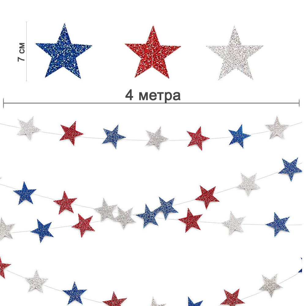 Гирлянда "Звезды" блеск/металлик 7 см х 4 м, триколор