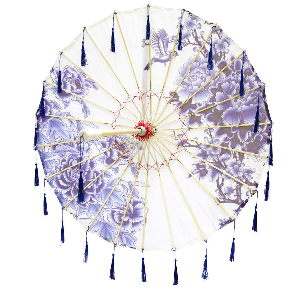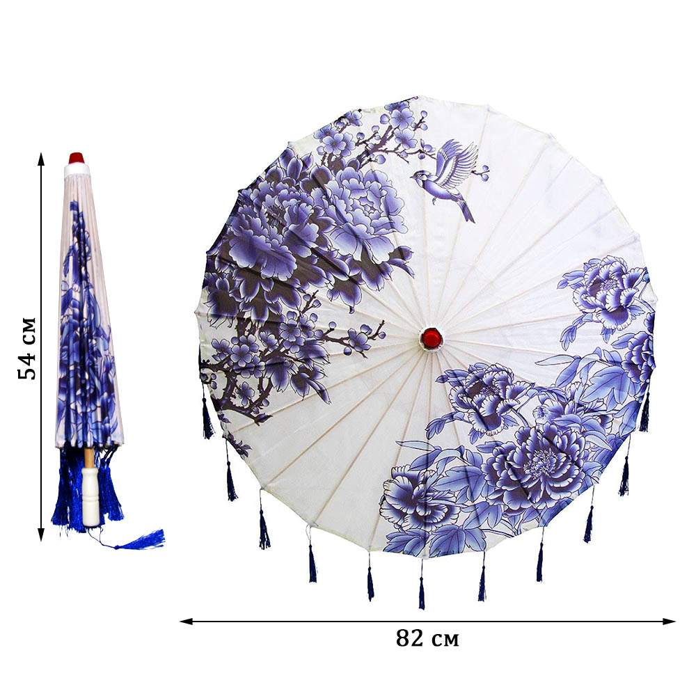 Китайский тканевый зонтик цветочный с кисточками 82х54см, №3