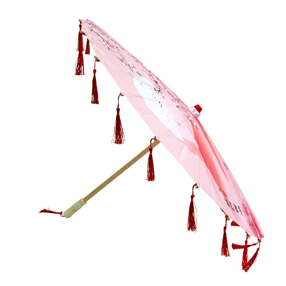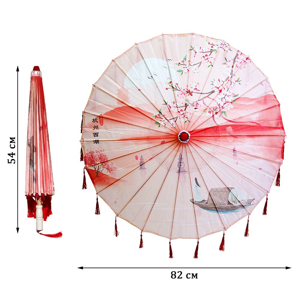 Китайский тканевый зонтик цветочный с кисточками 82х54см, №7