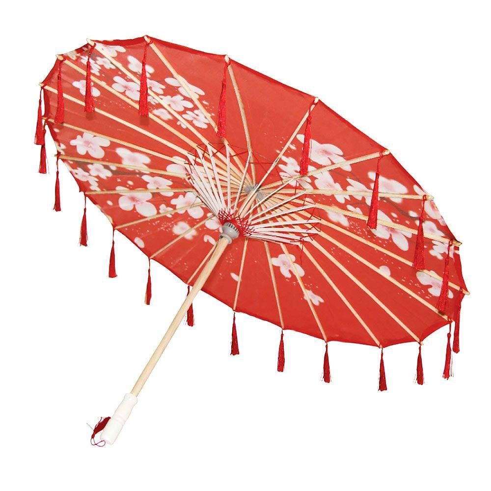 Китайские тканевые зонтики цветочные с кисточками 82х54 см