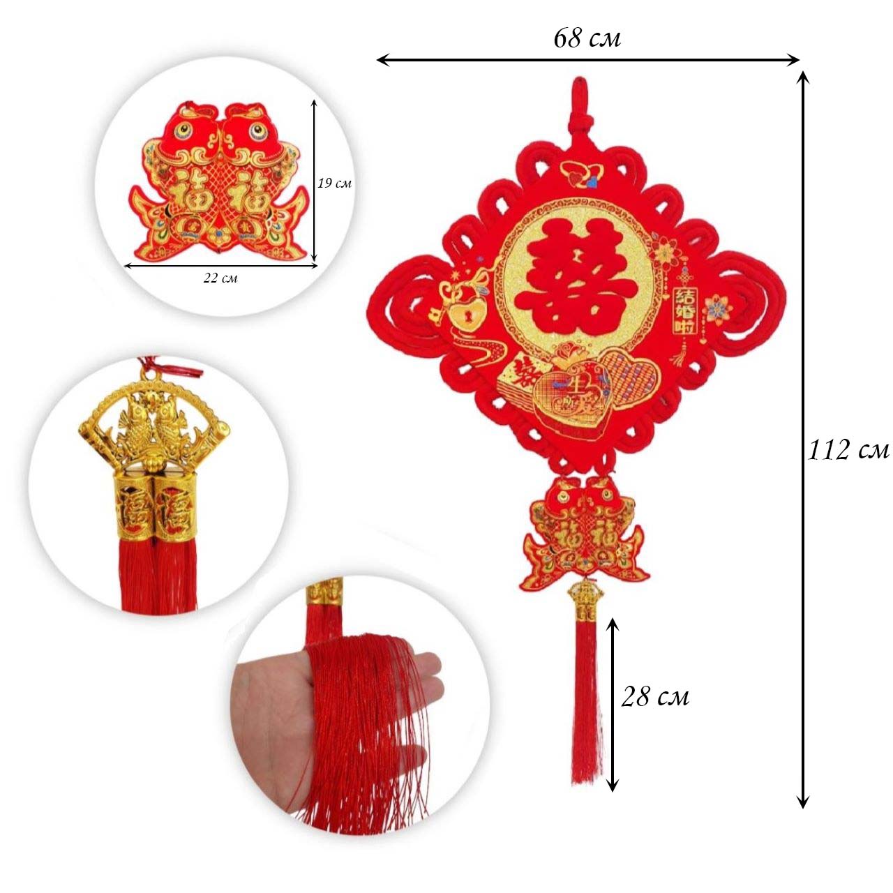 Китайский узел ромб красный рыбки 68х112см, Удача