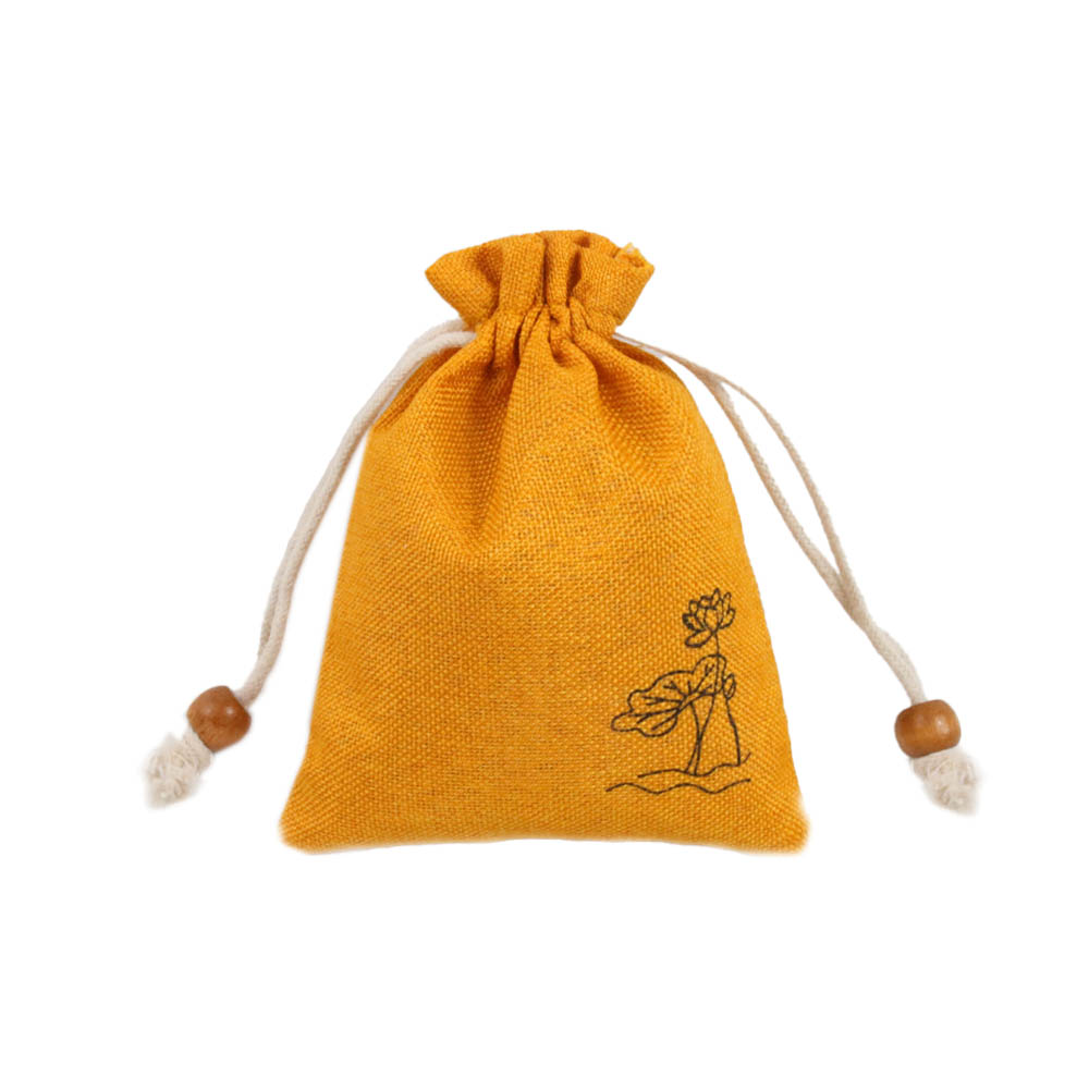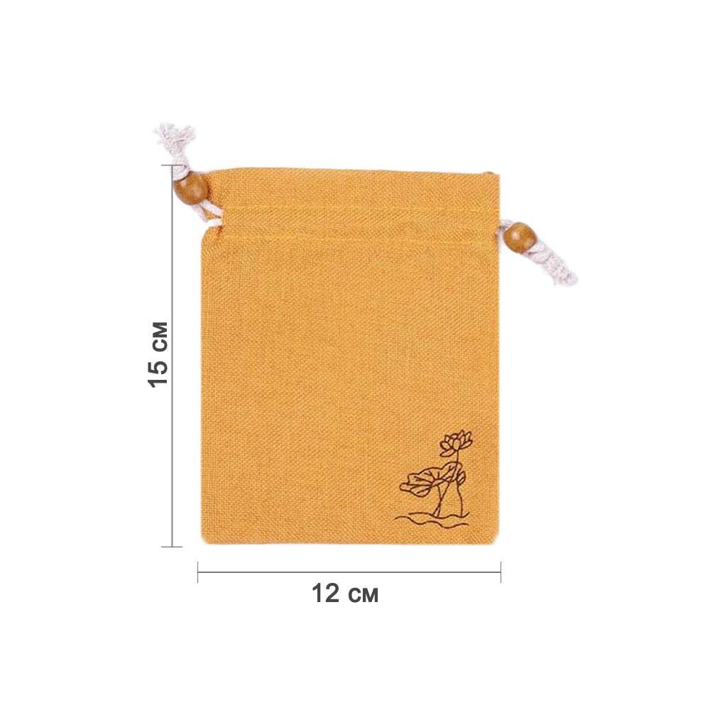 Мешочек из искусственного льна с орнаментом 15х12 см, желтый