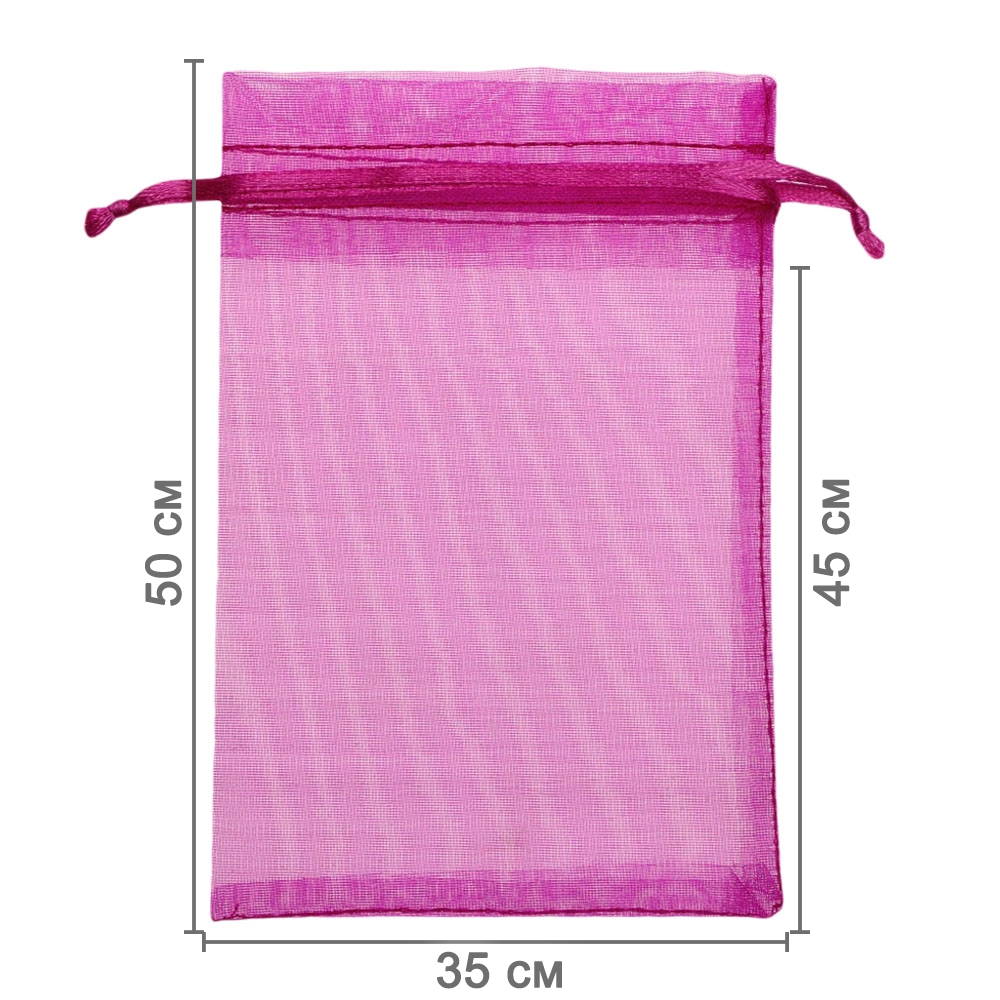 Мешочек из органзы 35 х 50 см — стильная и удобная упаковка для крупных подарков и хранения больших предметов. Лёгкая ткань подчёркивает содержимое и создаёт праздничный вид.