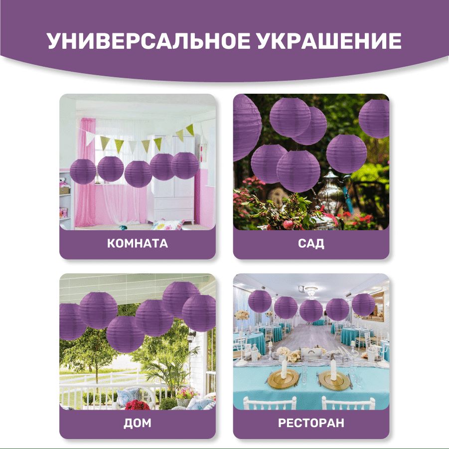 Комплект подвесные фонарики 35 см х 8 шт, фиолетовый
