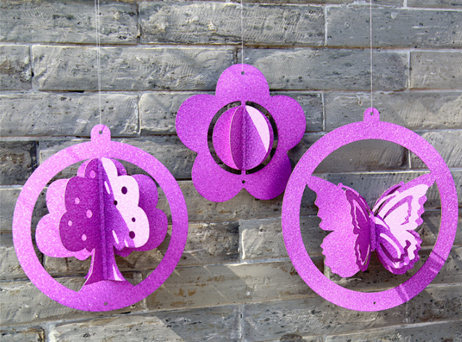 Набор подвесок бабочка+цветок+дерево 3D сиреневый