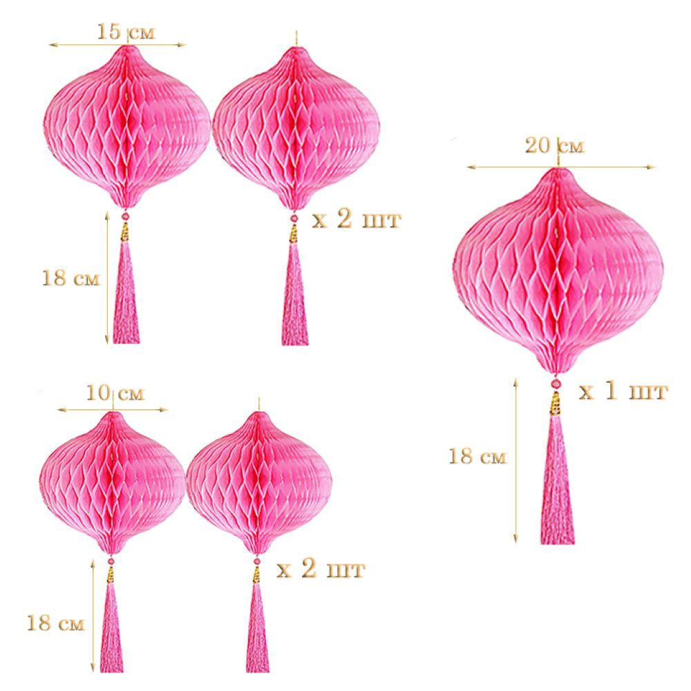 Набор украшений для праздника №70 включает пять шаров-сот и три веера-гармошки.