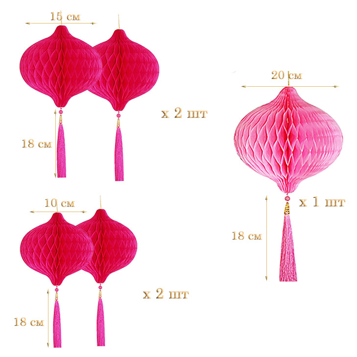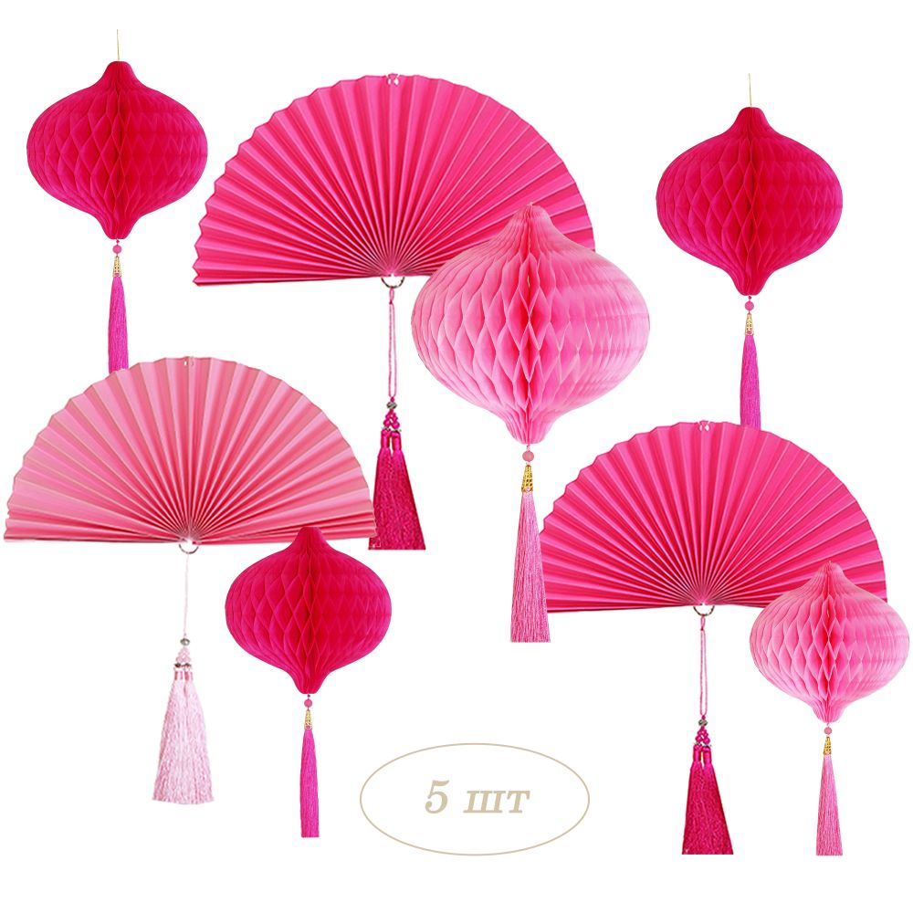 Набор украшений для праздника №71 включает пять шаров-сот и три веера-гармошки.