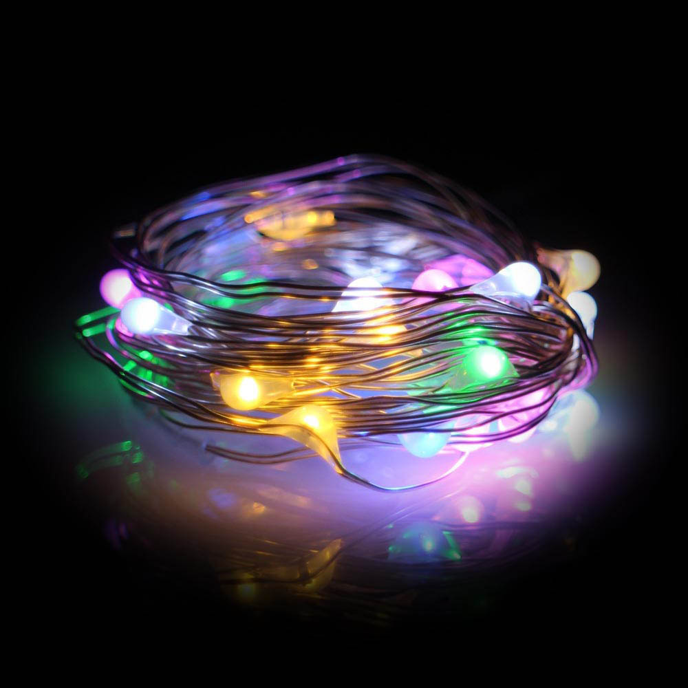 Нить "Роса" серебро, 2 м х 20 диодов, от батареек, разноцветный