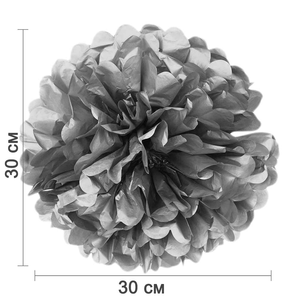 Серебряный бумажный помпон диаметром 30 см — стильное и лёгкое украшение для праздников, фотозон, витрин и интерьера. Отлично подойдёт для дней рождений, свадеб, вечеринок и тематических мероприятий.