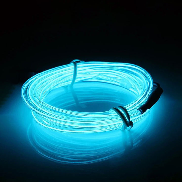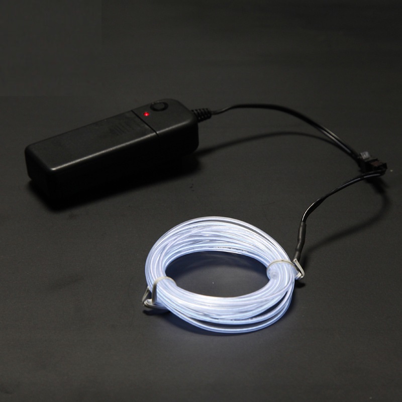 В комплекте с EL проводом, длинной 5 метра,  идет бокс с питанием от батареек, что позволяет его применять где угодно, даже на улице.  Работает от 2-х батареек 2АА (батареек в комплекте нет).