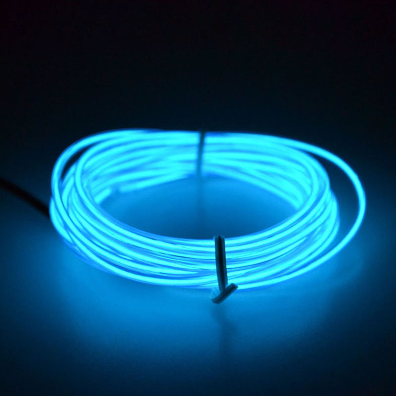 Шнур неоновый светящийся, синий. Можно применять для праздничного украшения интерьера, а также для декора танцевальных костюмов, новогодней елки, подарков, игрушек.