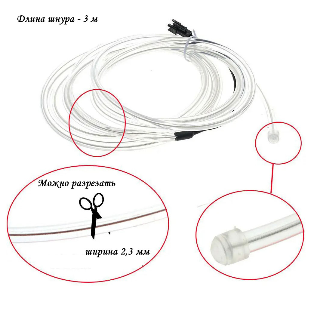 Шнур неоновый светящийся. Можно применять для праздничного украшения интерьера, а также для декора танцевальных костюмов, новогодней елки, подарков, игрушек.