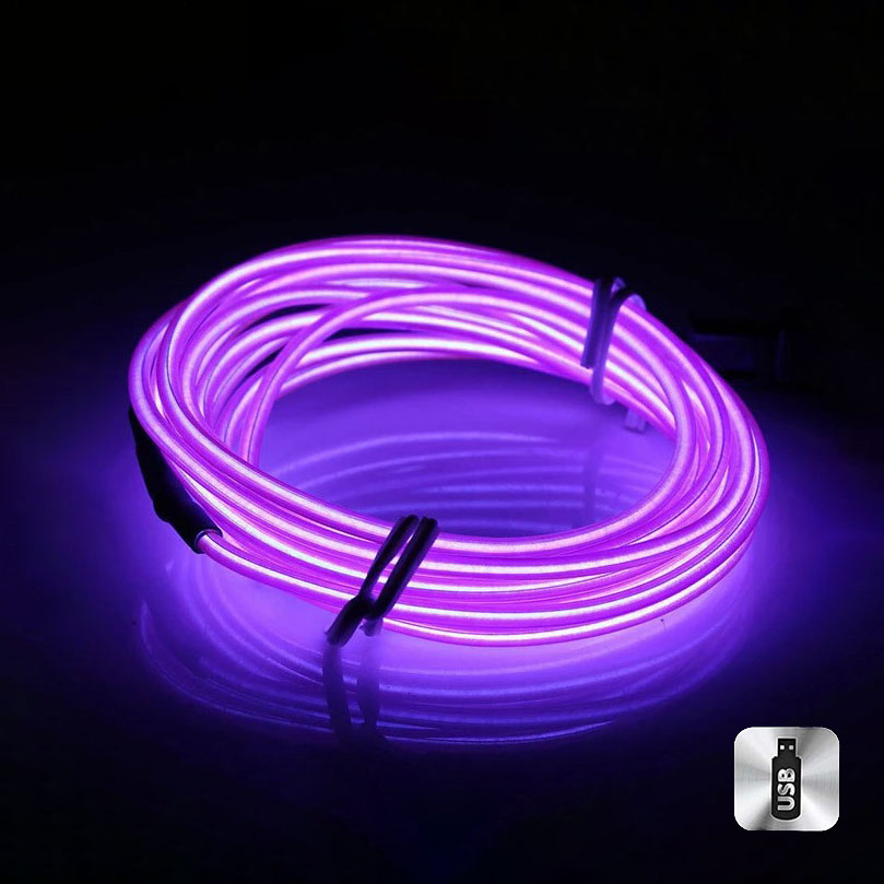 Шнур неоновый светящийся от USB 4 м, фиолетовый
