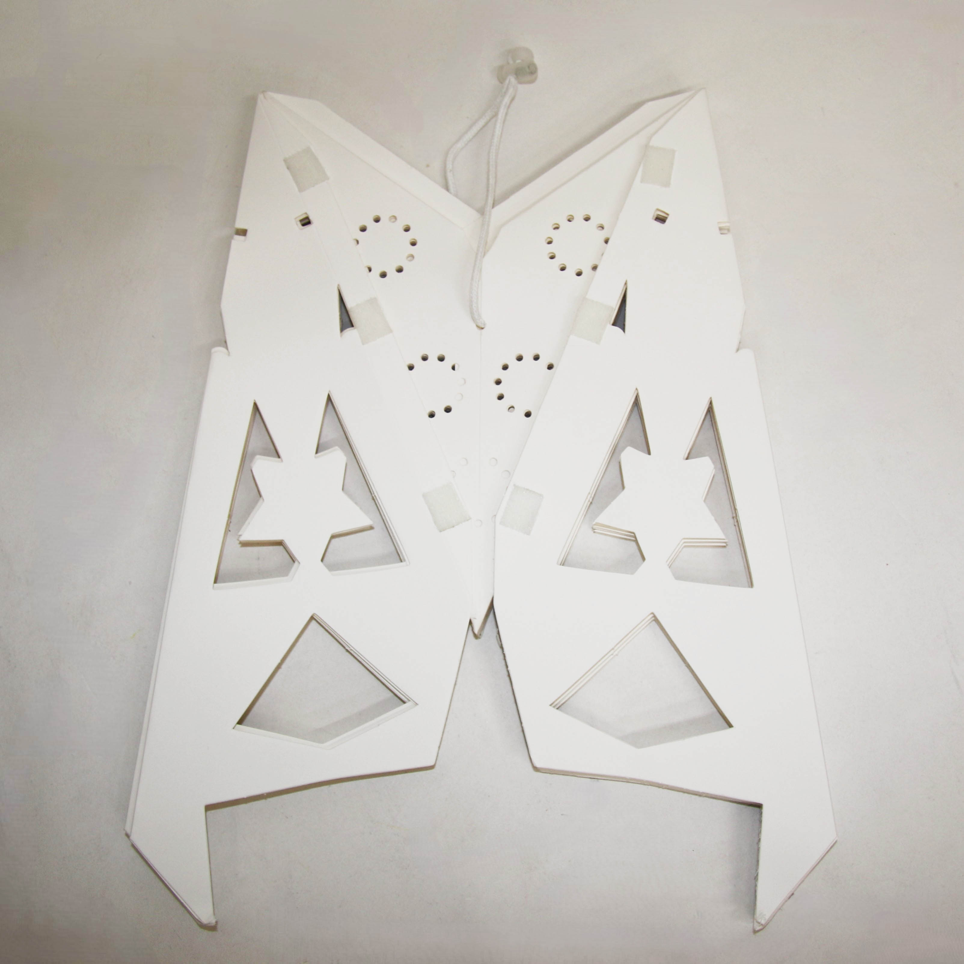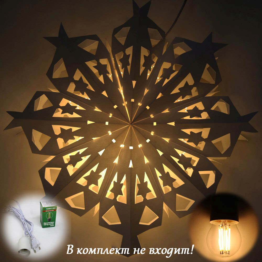 Снежинка на липучках размером 60 см, белого цвета, изготовлена из высококачественной бумаги.