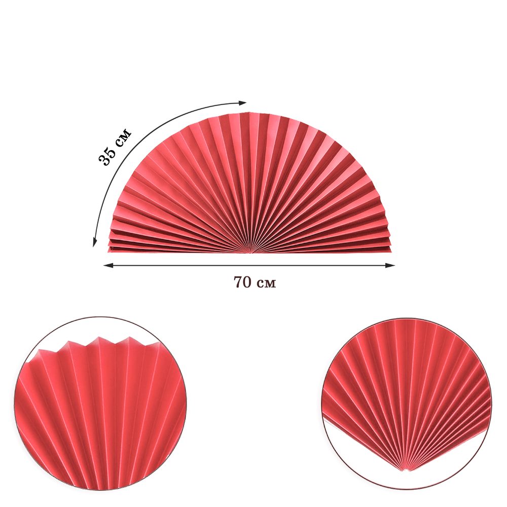 Веер-гармошка 160г/м 70 см, алый