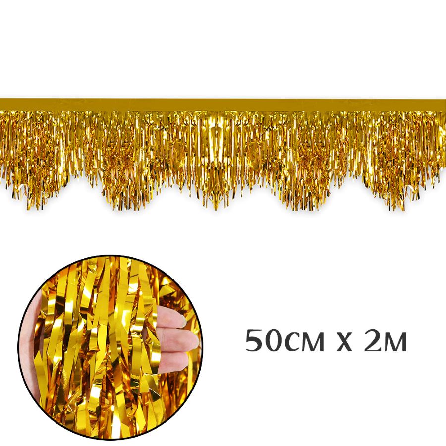 Превратите любое помещение в праздничное пространство с этим блестящим занавесом «Дождик». Металлическая бахрома золотого цвета красиво отражает свет, создавая эффект мерцающей декоративной завесы. Идеален для фотозон, свадеб, вечеринок, дней рождения и других торжеств.
