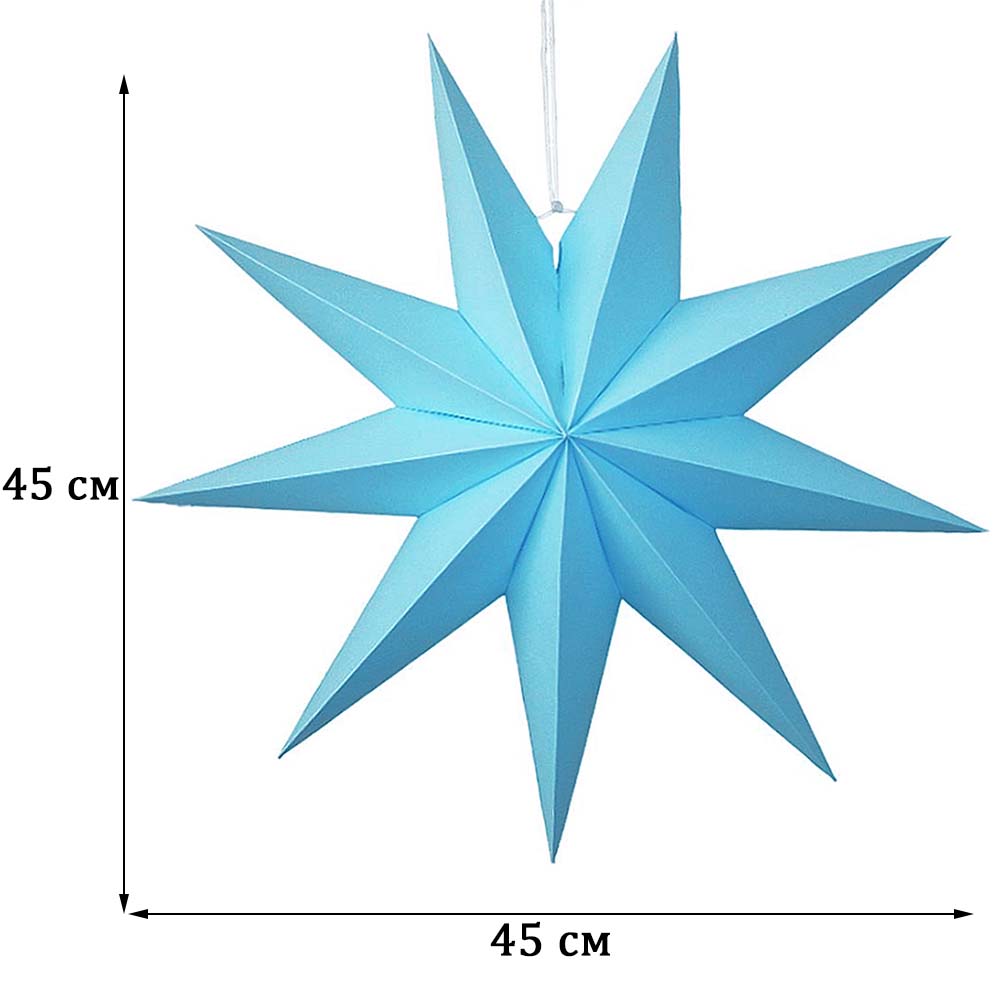 Объёмная девятиконечная звезда 45 см — декоративный элемент для интерьера и праздничного оформления. Лёгкая интерьерная звезда из картона хорошо держит форму и создаёт выразительный объём. Поставляется в сложенном виде, в комплекте шнур для фиксации объёма и подвеса.
