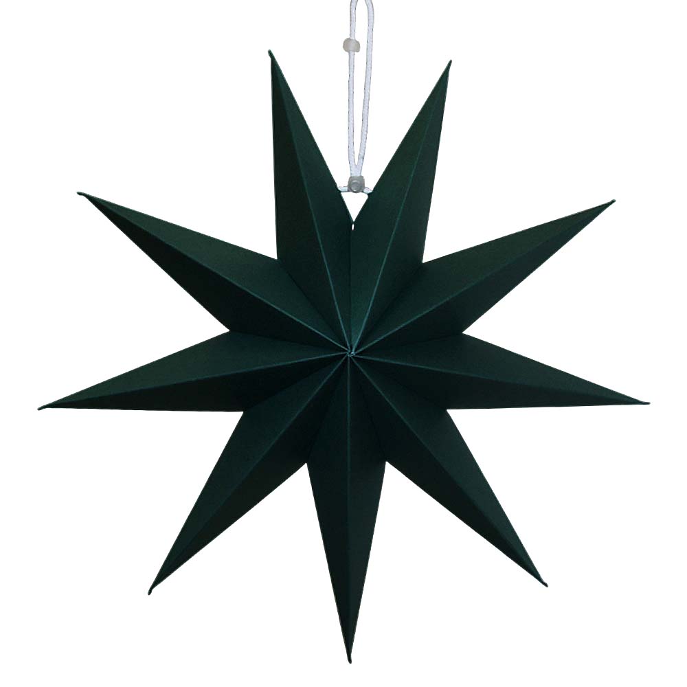 Объёмная декоративная звезда из картона диаметром 30 см с 9 лучами. Оснащена встроенным шнурком для подвешивания. Поставляется в компактном сложенном виде и быстро собирается: специальный шнурок при затягивании придаёт изделию объём и фиксирует форму. После сборки звезда остаётся устойчивой без дополнительных креплений и может использоваться многократно.