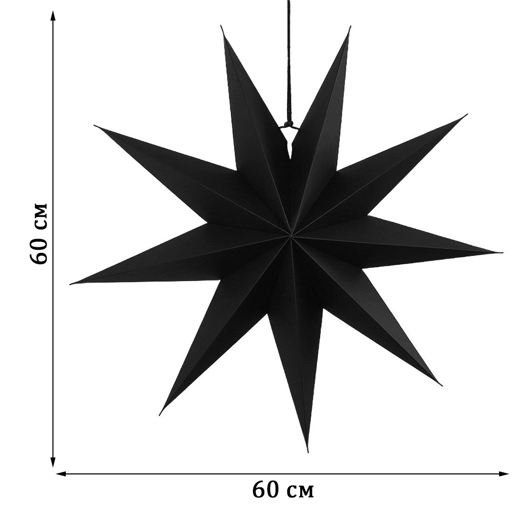 Объёмная девятиконечная звезда 60 см — декоративный элемент для интерьера и праздничного оформления. Лёгкая интерьерная звезда из картона хорошо держит форму и создаёт выразительный объём. Поставляется в сложенном виде, в комплекте шнур для фиксации объёма и подвеса.