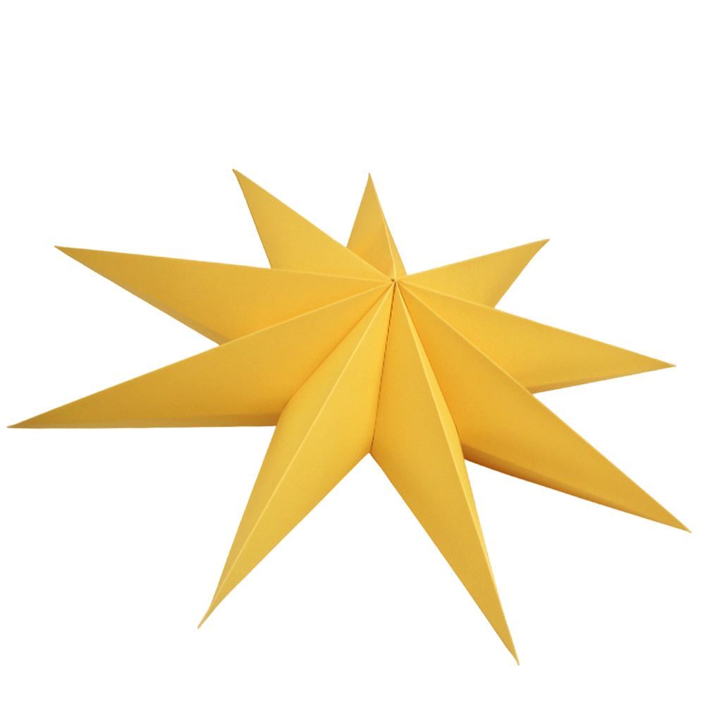 Объёмная девятиконечная звезда 60 см — декоративный элемент для интерьера и праздничного оформления. Лёгкая интерьерная звезда из картона хорошо держит форму и создаёт выразительный объём. Поставляется в сложенном виде, в комплекте шнур для фиксации объёма и подвеса.