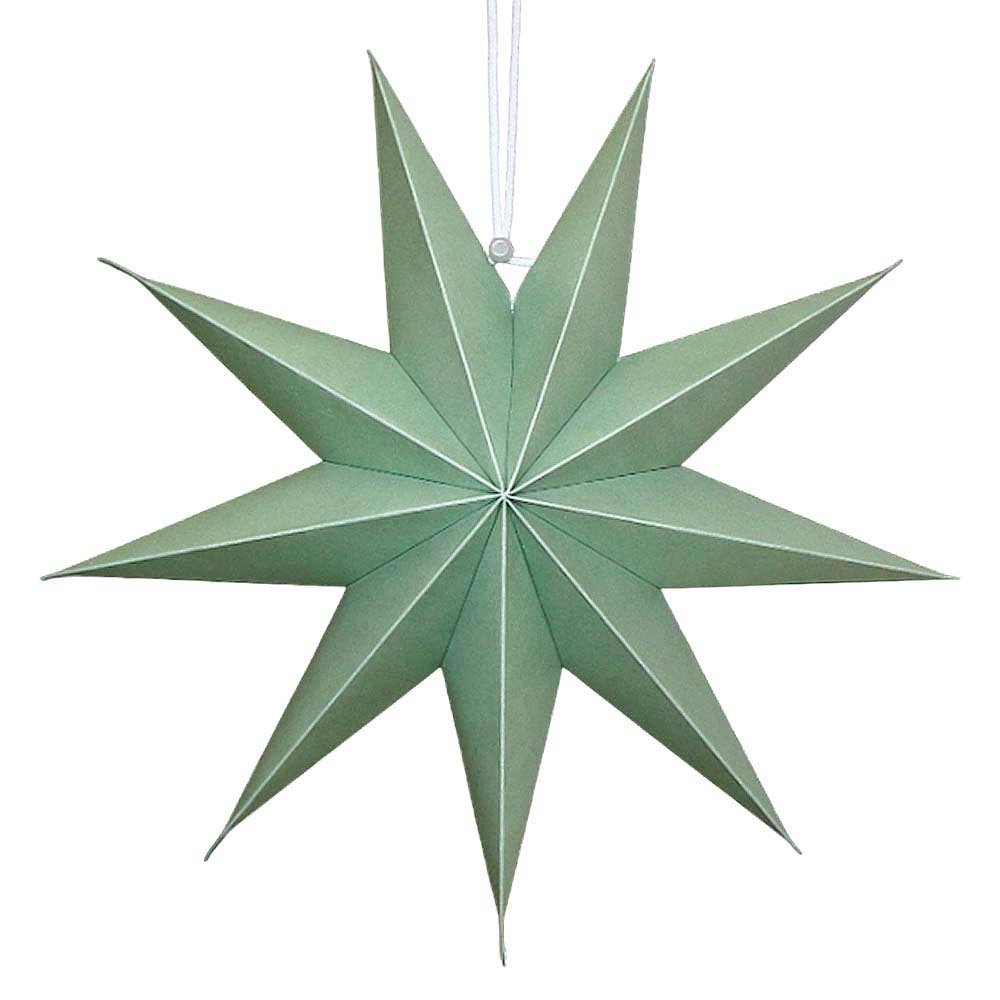 Объёмная декоративная звезда из картона диаметром 30 см с 9 лучами. Оснащена встроенным шнурком для подвешивания. Поставляется в компактном сложенном виде и быстро собирается: специальный шнурок при затягивании придаёт изделию объём и фиксирует форму. После сборки звезда остаётся устойчивой без дополнительных креплений и может использоваться многократно.