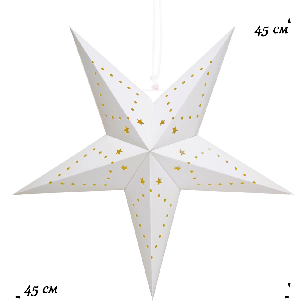 Звезда пятиконечная бумажная 45 см , Звезды и точки, белый